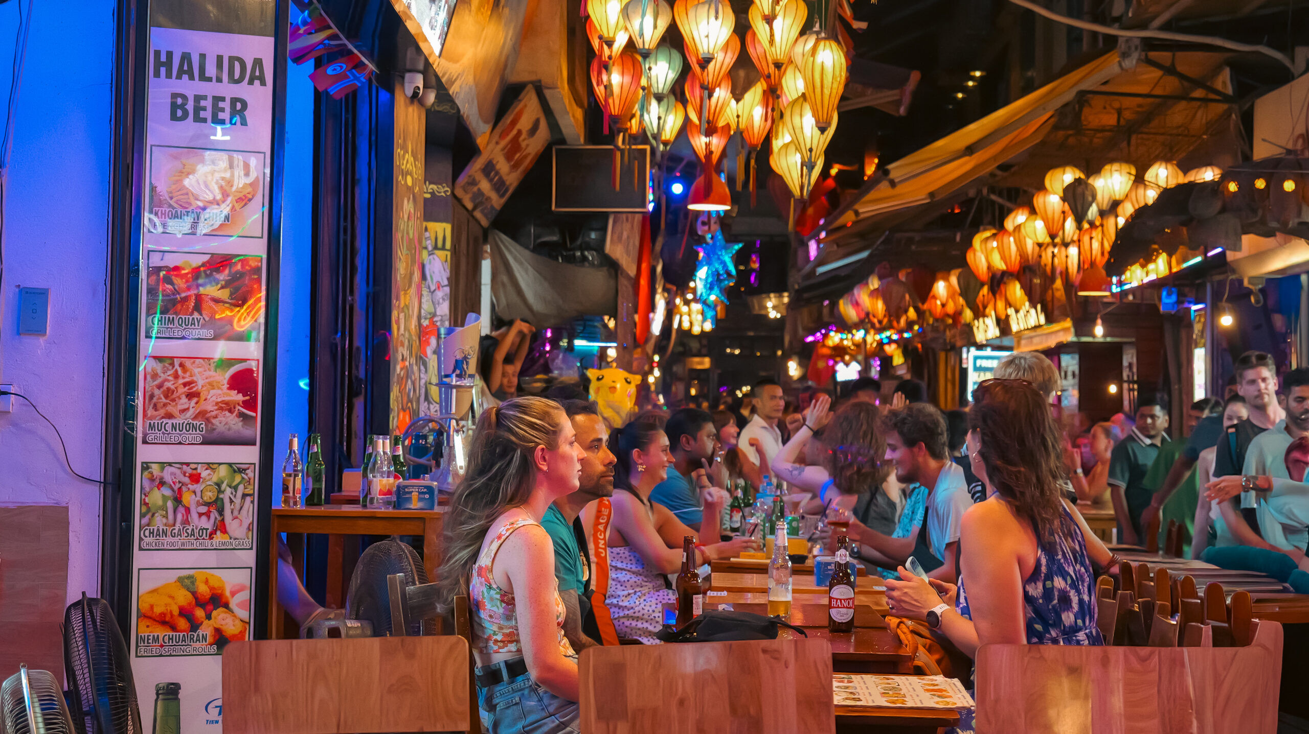 La Bia Hà Nội circule facilement entre les tables.