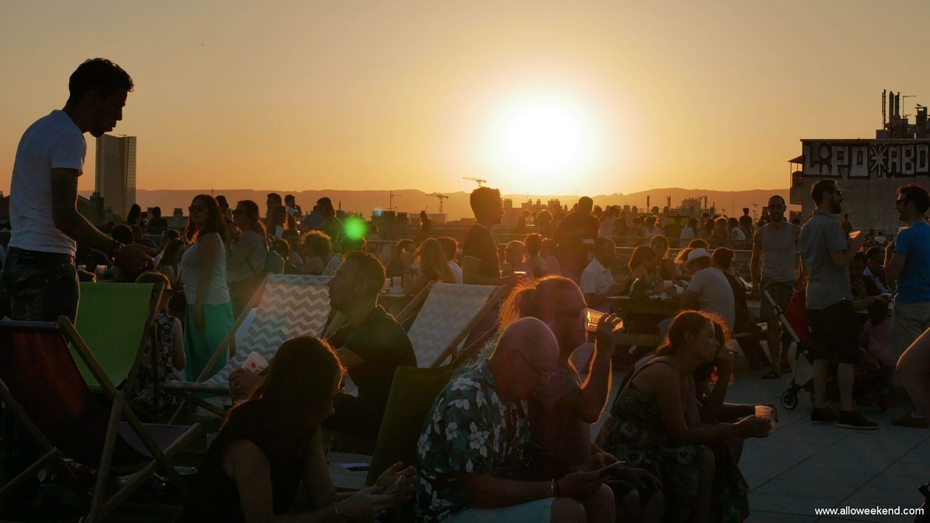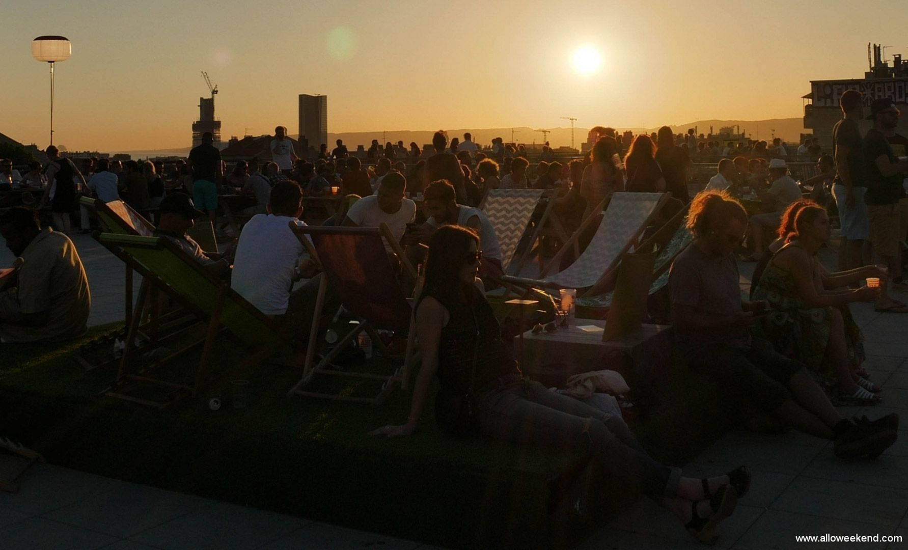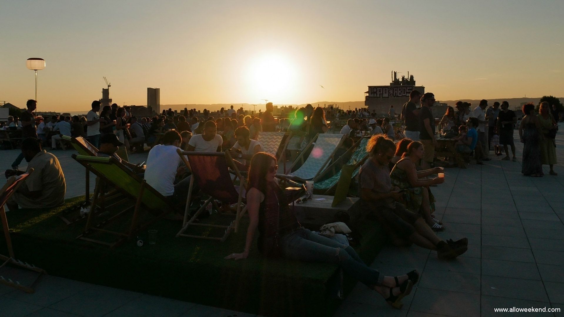 Rooftop Marseille à la Friche de la Belle de Mai, soirée On Air. Cet espace sur les toits, atypique et au-dessus de ces anciens entrepôts de la Seita, c’est prés de 8000m2. Vous disposez d’une vue panoramique exceptionnelle sur Marseille. Selon les soirées , ce rooftop accueille surtout en été pas mal d’animations : DJ, cinéma en plein air, danse de rue. C’est à peu près aménagé avec des tables et bancs fixes, des transats, des esplanades avec des buvettes.